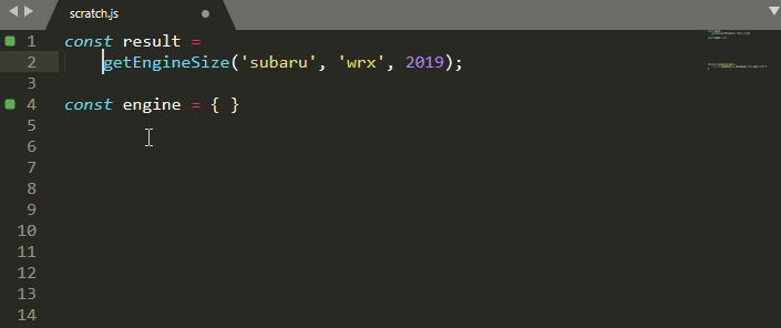 Once Quokka.js is running, you can see the code coverage in the gutter of your editor. The coverage is live, so you can start changing your code and the coverage will automatically be updated, just as you type.